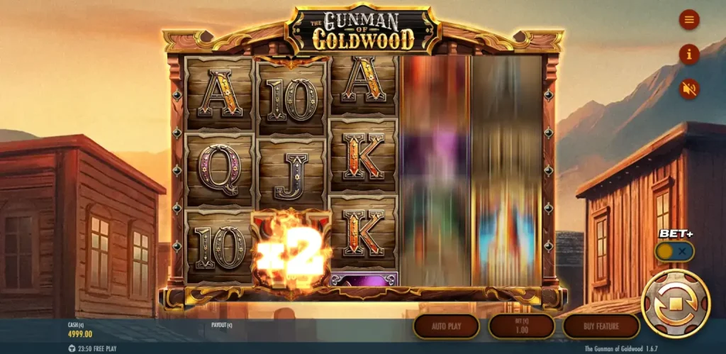 더 건맨 오브 골드우드 is a Wild West-themed video slot where a simple 10-payline base game is designed to feed into feature moments, especially Multiplier Wilds and a Duel mechanic, plus a Free Spins bonus that can extend itself through retriggers.